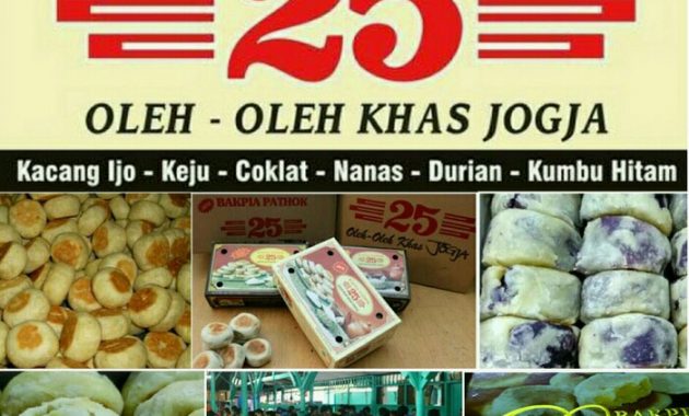 Bakpia merupakan salah satu makanan khas jogja yang isinya berupa kacang hijau yang dibungkus dengan tepung, lalu dipanggang. Tidak hanya kacang hijau, bakpia disini juga ada yang berisi cokelat, kumbu hitam, bahkan keju dan rasa lainnya.